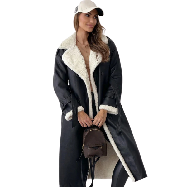 Tento kabát s plyšovou fleecovou podšívkou a elegantní siluetou je navržen tak, aby vás zahřál a zároveň vylepšil váš outfit. Přizpůsobený střih, zdůrazněný dvouřadými knoflíky a zavazováním v pase, vytváří elegantní a přitom praktickou volbu pro chladné dny. Kabát Milada je ideální jak pro příležitostné výlety, tak pro formálnější události a je skutečným zimním nezbytností.