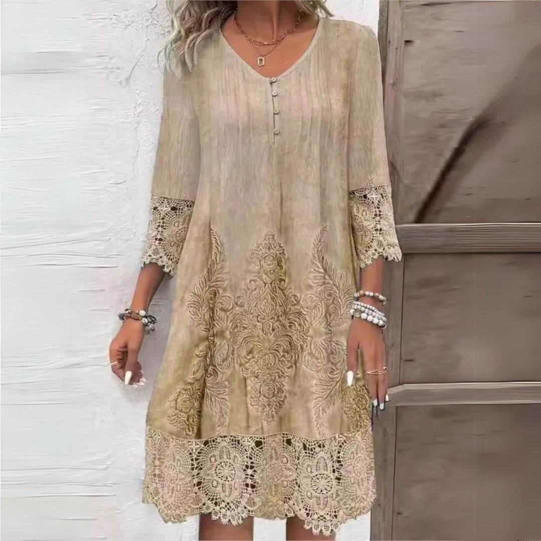 Darja | Zlaté krajkové šaty s výstřihem do V