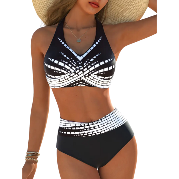 Stylové geometrické plavky Nadja kombinují moderní design s maximálním pohodlím. Lichotivý geometrický vzor a vysoký pas vytvářejí elegantní siluetu, zatímco kvalitní elastický materiál se přizpůsobí vašemu tělu a umožní vám cítit se sebevědomě – ať už relaxujete u bazénu nebo si užíváte slunečný den na pláži.